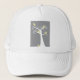 Five adorable abstract yellow birds hang out in a white tree against a grey background on a hat