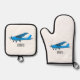 Fixed-wing aircraft cartoon illustration oven mitt & pot holder set