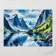 Order Your Fjord Landscape Watercolor Painting Postcard Today and Transport Yourself to the Majestic Fjords of Norway!