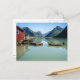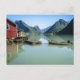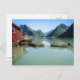 Fjord landscape with boathouse and mountains postcard