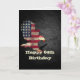 Bald eagle with an American flag graphic on black slate rock background for 64th birthday.