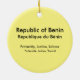 The flag and map of the Republic of Benin with all its departments labelled and coloured on a round ornament. Back of ornament contains text with the Republic of Benin and its motto in both English and French. This text is fully customisable so that you may add or change text to suit your needs.