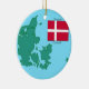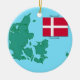 The map and flag of Denmark with the Kingdom of Denmark written in English and Danish.
