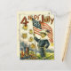 Vintage holiday postcard image of young boy with American flag and fireworks. Text reads "4th of July".