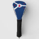 Golf Head Cover with flag of city of Fort Wayne, Indiana; blue and white flag and with red blockhouse in the centre and three illustrations in the blue field - illustration of Native American’s head, French fleur-de-lys and British lion