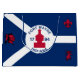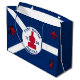 Large Gift Bag with flag of city of Fort Wayne, Indiana; blue and white flag and with red blockhouse in the centre and three illustrations in the blue field - illustration of Native American’s head, French fleur-de-lys and British lion