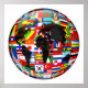 Illustration of a globe formed with international flags and a map of the whole world over the top. Easily customise and choose your own background colour. Image available on various gifts and products.
