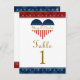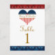 Beautiful USA flag heart patriotic or military wedding themed party table number cards. These vibrant coloured patriotic table number cards are a wonderful addition to any patriotic themed party or military party. The design features an American flag heart on a white background, in colours of red, white and blue on a white background, with a white banner area in the middle of the heart where the bride and groom names will appear in an elegant golden script. The top and bottom of card are red and blue with a weave design and white stars. A truly wonderful addition to your patriotic party tables! The text is in template form on this page ready for you to add the bride and grooms names and table numbers. This design is a match to many of our patriotic and military themed invitations we sell in our store. For more styles and designs of patriotic or military wedding table cards, greeting cards, invites, stamps, and gift items, please visit our store!