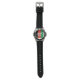Has heft and feel of expensive stainless steel quartz wrist watches. Solid construction and good looks. Although it had a really top quality rubber strap, I substituted a stainless steel "Shark" style mesh strap, which I think is the most comfortable strap available. Perfect. True colors of original image. Clear, crisp image precisely aligned and spaced.