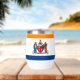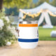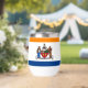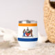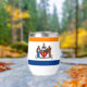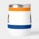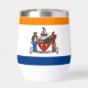 Thermal Wine Tumbler with the flag of Albany, New York. An orange, white, and blue flag with the city emblem in the centre
