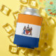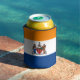 Can Cooler with the flag of Albany, New York. An orange, white, and blue flag with the city emblem in the centre