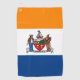 Golf Towel with the flag of Albany, New York. An orange, white, and blue flag with the city emblem in the centre