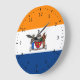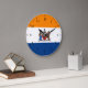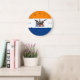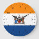 Clock with the flag of Albany, New York. An orange, white, and blue flag with the city emblem in the centre