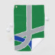 Golf Towel with a design with the flag of Albany, Oregon. A green, grey, and blue flag