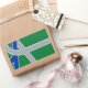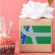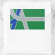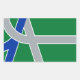 Sticker with a design with the flag of Albany, Oregon. A green, grey, and blue flag