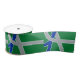 Ribbon with a design with the flag of Albany, Oregon. A green, grey, and blue flag