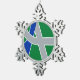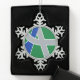 Snowflake Ornament with a design with the flag of Albany, Oregon. A green, grey, and blue flag