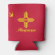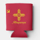 Can Cooler with city of Albuquerque, New Mexico; red flag with yellow bird and symbol of New Mexico
