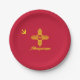 Paper plate with city of Albuquerque, New Mexico; red flag with yellow bird and symbol of New Mexico