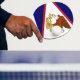 The flag of American Samoa is a flag consisting of a red-edged white triangle pointing towards the hoist charged with a bald eagle clutching a war club and fly-whisk, with dark blue upper and lower triangles. Adopted in April 1960 to replace the "Stars and Stripes" as the official flag of the territory, it has been the flag of the Territory of American Samoa since that year. The colours used epitomise the traditional colours of the United States and Samoa.