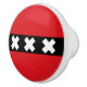 This design features the flag of the Dutch capital city of Amsterdam. The flag depicts three Saint Andrew's Crosses and is based on the escutcheon in the coat of arms of Amsterdam. Design journalist Roman Mars declared it, in 2015, to be the most "badass" city flag in the world. AFC Ajax, an Amsterdam-based football team that plays in the Dutch Eredivisie, uses the Amsterdam flag as their captain's armband. Amsterdam is colloquially referred to as the "Venice of the North", because of the large number of its canals which form a UNESCO World Heritage Site.