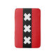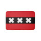 Bath mat with design with flag of Amsterdam, capital city of Netherlands, red and black flag with three white Saint Andrew’s crosses in the centre