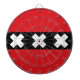 Dartboard with design with flag of Amsterdam, capital city of Netherlands, red and black flag with three white Saint Andrew’s crosses in the centre