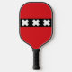 Pickleball paddle with design with flag of Amsterdam, capital city of Netherlands, red and black flag with three white Saint Andrew’s crosses in the centre