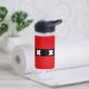 Water Bottle with design with flag of Amsterdam, capital city of Netherlands, red and black flag with three white Saint Andrew’s crosses in the centre