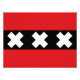 The flag consists of three horizontal stripes red, black and red and three white Saint Andrew's Crosses.