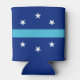 Can Cooler with the flag of Anaheim, California. A blue flag with six white stars and an azure stripe