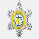 Snowflake Ornament Flag with city of Anchorage, Alaska; yellow flag with white seal with an illustration of a blue ship and anchor
