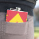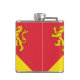 Vinyl wrapped flask with design with a flag of historic county of Anglesey, in Wales, Great Britain;; red flag with yellow chevron and three lions;