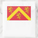 Sticker with design with a flag of historic county of Anglesey, in Wales, Great Britain;; red flag with yellow chevron and three lions;