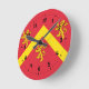 Wall Clock with design with a flag of historic county of Anglesey, in Wales, Great Britain;; red flag with yellow chevron and three lions;