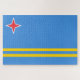 This design features the flag of Aruba, which is an island and a constituent country of the Kingdom of the Netherlands in the mid-south of the Caribbean Sea. Aruba is about 18 miles north of the Venezuelan peninsula of Paraguaná and 50 miles northwest of Curaçao. Together with Bonaire and Curaçao, Aruba forms a group referred to as the ABC islands. The capital of Aruba is Oranjestad, which is also the country's largest city. San Nicolaas is Aruba's second largest city.