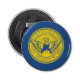 Button bottle opener with flag of city of Atlanta, Georgia; blue flag with yellow seal with an illustration of phoenix rising from flames