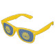Sunglasses with flag of city of Atlanta, Georgia; blue flag with yellow seal with an illustration of phoenix rising from flames
