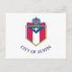 Postcard with the flag of Austin, Texas. A white flag with city’s coat of arms in the centre