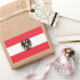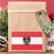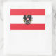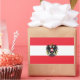 Design with flag of Austrian Republic of Austria with red and white stripes with coat of arms with an eagle