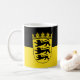 Mug with variant flag of Baden-Württemberg; design with two horizontal bands of black and yellow (golden), and emblem with shield with three black lions in the center