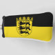 Golf putter cover with variant flag of Baden-Württemberg; design with two horizontal bands of black and yellow (golden), and emblem with shield with three black lions in the centre