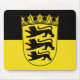 Mousepad with variant flag of Baden-Württemberg; design with two horizontal bands of black and yellow (golden), and emblem with shield with three black lions in the centre