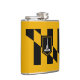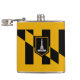 Vinyl wrapped flask with flag of city of Baltimore, Maryland; black and yellow flag with an illustration of Battle Monument