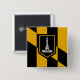 Square Button with flag of city of Baltimore, Maryland; black and yellow flag with an illustration of Battle Monument