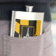 Flask with flag of city of Baltimore, Maryland; black and yellow flag with an illustration of Battle Monument
