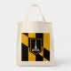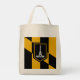 Tote Bag with flag of city of Baltimore, Maryland; black and yellow flag with an illustration of Battle Monument