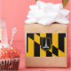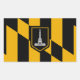 Sticker with flag of city of Baltimore, Maryland; black and yellow flag with an illustration of Battle Monument