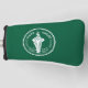 Golf putter cover with design with flag of Bangkok, capital city of Kingdom of Thailand; green flag with white illustration of an elephant in the centre
