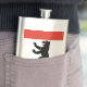 Flask with flag of Berlin, state flag with horizontal stripes of red and white, with an illustration of a black bear in the centre